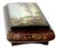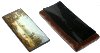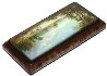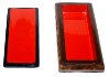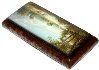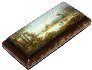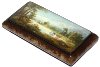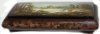 The box is made out of high quality paper-mache. Black lacquer covers the exterior and red lacquer covers the interior of the box. The box's sides imitate a tortoiseshell; the sides are also decorated with gold scan patterns (made of tiny shapes hand punched from gold metal sheets, and then glued to the box manually).The lid isn't hinged, and the box rests on four legs. The work is signed with the artist's name, Fedoskino and the year of 2005.