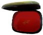 The box is constructed from paper-mache. The exterior is covered with black lacquer, while the interior is traditionally red. The lid is not hinged, and the box rests on a flat bottom. The work is signed with the artist's name, Fedoskino and the year of 2001.