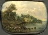 It shows a bank of a river. An oil on canvas painting painted in the 19th century inspired the artist to create it. For Fedoskino painters, as it was for the Vishnyakov and Lukutin artists before them, inspiration is often found in canvas paintings by artists great and small. A spectacular example of how a beautiful painting can be rendered in miniature is presented in this work.