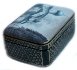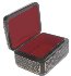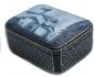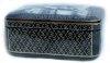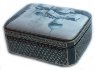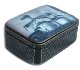 The scene is framed with a gold band. The sides of the box are decorated with a nice tartan pattern drawn in gold paints.