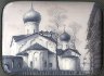 Here the artist has chosen an old Russian Church and he paints it in mono-chromic style.
