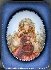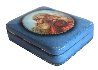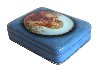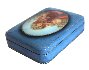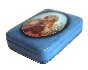 The oval painting, edges of the lid and the base of the box are decorated with a silver scan pattern (composed of scrolls hand punched from silver metal sheets, and then glued to the box manually).