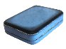 The box's exterior is covered with blue color and dark blue viviens; the interior is traditionally red.