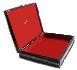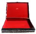 . The box is made out of paper-mache. Black lacquer covers the exterior and red lacquer covers the interior of the box. The lid is hinged at the top, and the box rests on four feet. Signed with the artist's name, the village of Fedoskino, 2017 and the title.