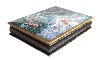 The scene is framed with a gold ornament; the box's sides are decorated with the intricate plants paint in gold.