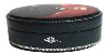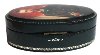 The box is constructed from paper-mache. Black lacquer is used to paint the exterior of the box while red lacquer completes the interior of the work.