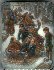 This beautiful painting of winter amusement was painted by Dmitriy Bebikhov of Fedoskino. Here we can see several children sledging down the hill. The sledges are large, several people can fit in one! Some of the children are just going down and some others are rising up the hill! Kids are screaming and yelling!