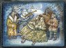 In ancient times in yuletide Russian people dressed masks and fancy dresses and walked along village streets, singing Christmas songs that glorified Jesus Christ. They stopped in at different houses and the owners had to give them presents and sweets. This ancient rite in Russian sounds like "kaliyda".In this composition the artist depicted this masked performing in Svyatki time.