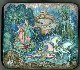 Description: The image is painted on a piece of pressed and glued mother-of-pearl, which covers the entire surface of the lid, except for its ends.