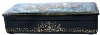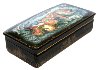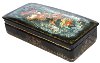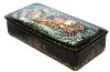Golden floral ornament frames around the lid's artistry. The box sides are decorated with intricate and complex gold and silver floral ornamentation.