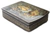 The box's exterior is decorated with intricate and decorative gold filigree with aluminum accents.