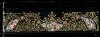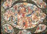 The artist uses a wide range of colors from his palette, which makes this piece come to life. Gold paint is used to highlight the scene, but is limned on in such a manner that it provides the palette with extra flair.