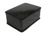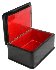 The box is constructed from paper-mache. The exterior of the box is painted with black lacquer while the interior is completed with red lacquer.