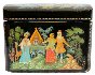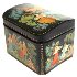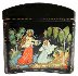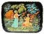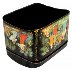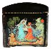 Description: This interesting five-sided casket was painted by a talented Palekh artist Galina Kuzmenko. It shows several scenes from the popular Russian fairy-tale "Snowmaiden" or "Snegurochka".