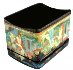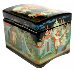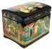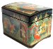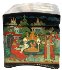The palette is full of pallete of blues, reds and whites. Each character is detailed with gold and silver paints. Gold paint is also used to decorate the box's exterior with attractive leafy patterns on a lid and on the sides.