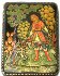 The composition is painted in the traditional Palekh style. The artist did a wonderful job in the development of texture. The greens, oranges and reds give off new radiance because of these highlights. As a genre scene, this Russian lacquer miniature couldn't be more appealing.
