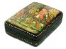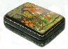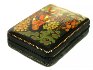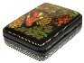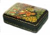 Description: This small, but detailed box has been painted by the talented Palekh artist Yakovets Elena. She does a wonderful job in coordinating very bright colors in small areas to burst with life and animation.