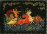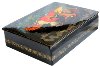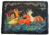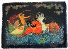 Talented artist Galina Tsiganova from the village of Palekh has painted this scene with a winter troika (three horse sleigh) speeding through the Russian countryside.