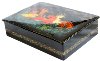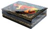 The scene is framed with a golden dots ornament.The box's sides are decorated with rich gold paint ornamentation.