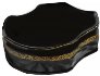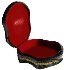 The box's exterior is covered with a black lacquer. The interior is traditionally red.