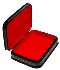 The box is made out of paper-mache. Black lacquer covers its exterior and red lacquer covers its interior.