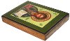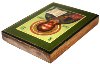 Description: This icon has been painted in the village of Palekh on the wooden base. According to the tradition of Russian icon painting, the work is painted in egg tempera paints and detailed with brilliant gold paint. The leaves of gold is also used to create a frame around the depicted icon.