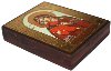This icon has been painted in the village of Kholui on the wooden base. According to the tradition of Russian icon painting, the work is painted in egg tempera paints and detailed with brilliant gold paint. The leaves of gold is also used to create a frame around the depicted Godmother.