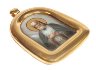 The pendant was made and decorated in Workshops of husband of Lubov, Yuriy Chernobaevskiy. In icon were use followed materials as bronze covered with gold, gold itsels, mother-of pearl.
