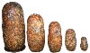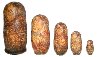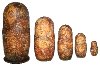 All dolls are painted in brown tones with the minor additions of greens, reds and blues. Besides the figures of peasants the dolls also include the paintings of different plants, animal and insects.
