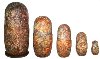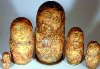 Description: This beautiful nestling doll was painted by Kirmasov from the village of Khotkovo. It is called "Rest" and includes 5 dolls showing 5 figures of peasants that take a rest.