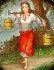 The scene is painted in bright, mellow tones. Aluminum powder is used here to enhance the color of the river, the sky, the buckets, the girl's skirt and the wreath on her head. More over, aluminum powder makes the composition look more appealing and decorative, and fills it with a magic glow.