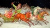 Description: This box was created by Fedoskino artist Yantkova L.Yu. The composition shows one of the all time favorite subjects for lacquer box painters - that of a pair of racing winter troikas (three horse sleighs), speeding through the Russian countryside. In Russia, the troika is a very important national theme representing freedom and good nature. During the long winter months taking a troika ride for fun is a common practice, and yes, even today, in more rural areas of the country.