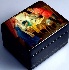 Description: This miniature was created by Fedoskino artist N. Vorontsova. It is a splendid sample of traditional Fedoskino lacquer miniature. The subject is based on the well-known fable "Demyan's fish soup" written by the famous Russian writer I.A.Krylov (you can find this fable on our web site). The fable tells about ostentatious amicability of the peasant Demyan. He wanted to display his kindness, hospitality and friendliness, feeding his friend Foka with tasty and fragrant fish soup. Foka was full; he had already eaten four plates of soup, but Demyan forced and entreated him to eat another one. Foka couldn't bear it and ran away.