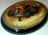 N. Lavronnova from the village of Fedoskino created this splendid box. It features a scene from "The Nutcracker", a Christmas fairy-tale written by E.T.A Hoffman. The story tells about adventures of a little girl during the Christmas night. All her toys became alive and started speak like people. Her favorite toy, the Nutcracker, became her suitor and defender from the Mouse King. Here we can see the Nutcracker attacking the mice, the soldiers of three-headed Mouse King.