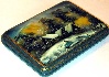This beautiful winter scene has been created by Dunaev from the village of Fedoskino. This artist is interested in painting picturesque landscapes; it is his favorite theme in lacquer miniature painting. Here the artist depicts three peasant wooden houses located on the edge of the forest.