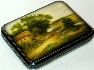 Description: The landscape painted here is by Butsinskiy of Fedoskino. The time of year is obviously autumn, as the hay has already gathered and nature is preparing winter. The colors during this time of year are astonishing to look at.