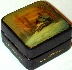 Description: This marvelous small box was painted by Kirsanov from the village of Fedoskino. It features a wooden church located on the hill, and all around it spreads the winter landscape. The sunset on the sky is painted strikingly realistically with the help of mother-of-pearl.