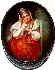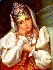 She wears traditional Russian upper-class clothing, and is probably the daughter of a wealthy merchant or perhaps even a nobleman. Her white sleeves are masterfully painted, with shading and design to show three-dimensionality.