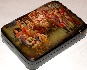 This box isn't big, but here Vatalina could find place to paint sixteen human figures. Each of them has the individual face with extreme life-like detail and expression. Here the artist also demonstrates her fertile fantasy while painting the costumes of the characters, - none of them is repeated. The interior of the peasant house where the action takes place is drawn with a lot of details that familiarize the viewer with a family life of Russian peasants. Here we can see the stove that is the center of a Russian peasant house, the barrel filled with water, used as a simple appliance for washing, and icons on the wooden walls.