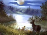 Description: This thrilling landscape is a creation of A. Simonov from the village of Fedoskino. It shows the deer that has come to the river at night to drink water. The riverbank covered with dense vegetation is brightly illuminated by the full moon. It's silence. Nature rests after a long, hot, sunny day.
