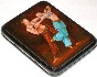 The theme of the Russian Ballet is very popular among Fedoskino artists, and this work painted by Loris continues this series. The scene is painted in brown, pink and turquoise tones; the costumes of the ballet dancers are detailed with gold and silver paints.