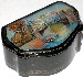 The box is constructed from paper-mache. Black lacquer is used to paint the exterior of the box while red lacquer completes the interior of the work. The lid is hinged from the top of the scene, and the box rests on a flat bottom. The work is signed with the artist's name, Fedoskino, and the year of 2007.