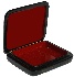 The box is constructed from paper-mache. Black lacquer is used to paint the exterior of the box while red lacquer completes the interior of the work. The box has a hinge from the top of the scene, and rests on a flat bottom. Fine work!