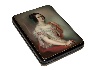 Description: This gorgeous box continues a series of female portraits painted by Dokuchaeva. Here she depicts an elegant lady, a contemporary of Alexander Pushkin. Dressed in the luxuriant off-the-shoulder dress, she looks at the viewer with her deep brown eyes.
