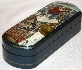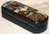 This is a fresh original of work of the established Fedoskino artist Alexey Otryaskin. The scene is painted in the art manner typical for this artist. The palette is extremely bright and vivid. The oils are mixed with gold and silver paints in some areas to fill the composition with a natural brilliance. Gold paint is used to paint the cupola of the cathedral painted on the right, to highlight the wooden tower drawn on the left, to detail the rope-walker's costume and some other minor elements. Silver paint shines through the river, the grass, the roofs, and the costumes of all characters. Mother-of-pearl that has greenish undertones creates a magic sparkle of the firebird's feather. Very interesting work!