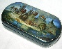Description: This beautiful box painted by Bazhenov shows an impressive view of the white-stoned Rostov Kremlin situated in the ancient Russian town of Rostov. The white stoned cathedrals encircled by the massive defensive wall are lit by the cold moonlight in the darkness of a night.