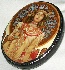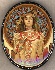 The box shows the portrait of a Byzantine princess holding a bowl of wine. She is painted against the beautiful ornament that decorates the wall in the chamber where she is standing.