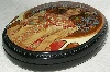 The box is made out of high quality paper-mache. Black lacquer covers the exterior and red lacquer covers the interior of the box. The lid is hinged at the left and the box rests on a flat bottom. Signed with the artist's name, the village of Fedoskino, and the year of 2006.