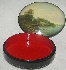 The box is constructed from paper-mache. The exterior is covered with black lacquer, while the interior is traditionally red. The lid is not hinged, and the box rests on a flat bottom. The work is signed with the artist's name, Fedoskino and the year of 2005.