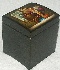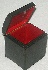The box's exterior is covered with gray oils mixed with aluminum powder. Its interior is traditionally red.